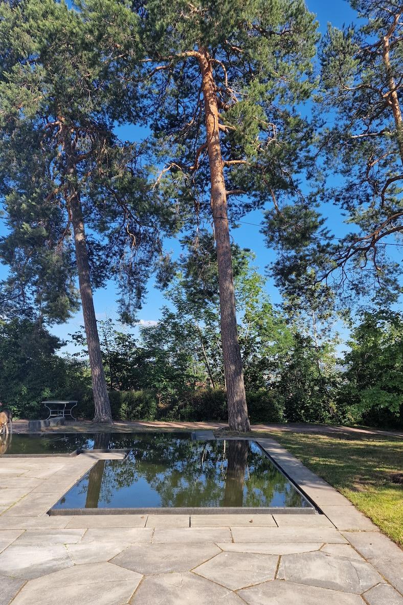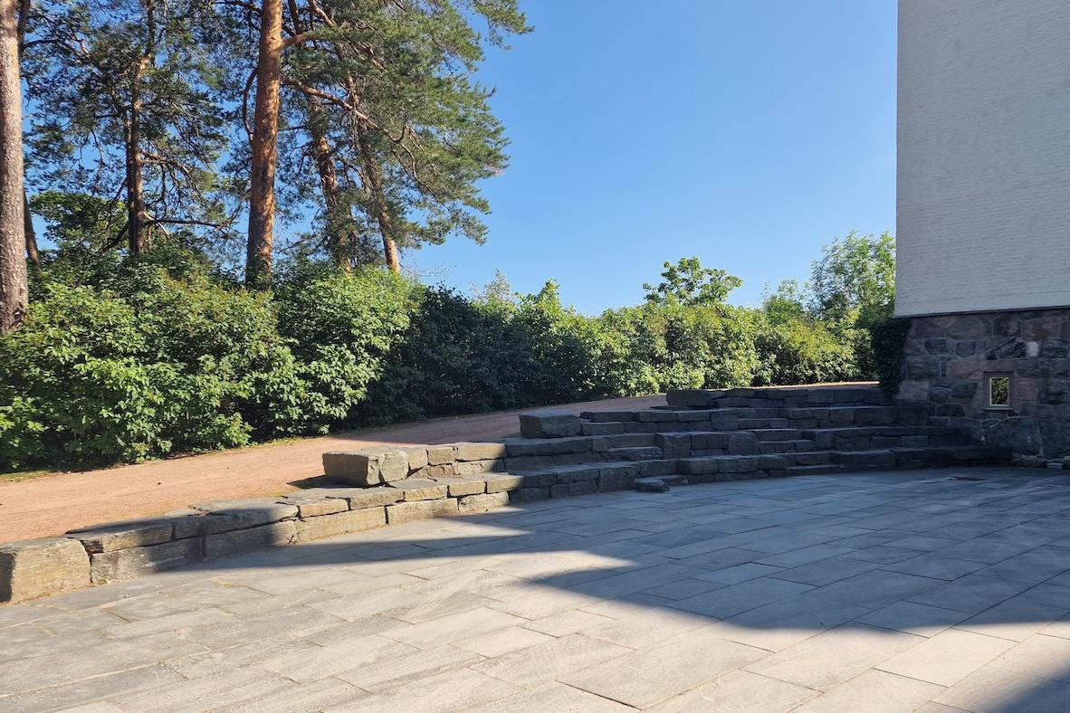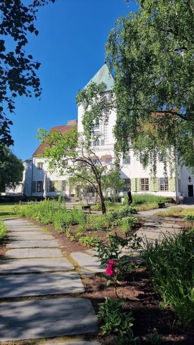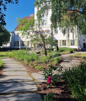 Hageanlegget som er fra 1941-42, ble fullstendig rehabilitert sammen med bygget ved etableringen av Senter for studier av Holocaust og livssynsminoriteter i 2005. Eiendommen er på ca. 16 mål fordelt på arealer med skog, adkomst, parkeringsplass og hageanlegget på forplassen og på sørsiden.